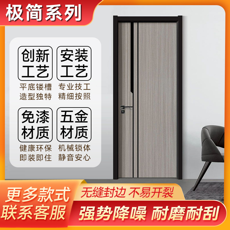 Solid Wood Door Indoor Soundproof Bedroom Door Living Room Door Set Of Simple Light Luxury Free Paint Carbon Crystal Door Factory Direct Sales